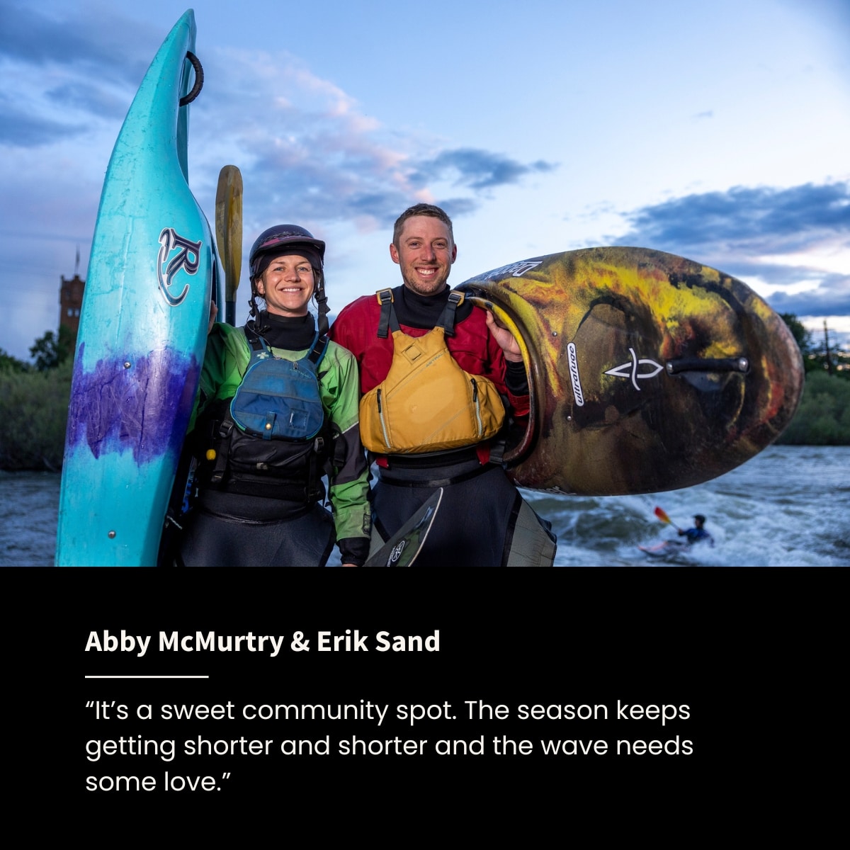 David says the idea for the wave came from Brennan’s vision. Brennan dreamed of removing a dangerous tangle of rebar and concrete from a diversion just below the Beartracks Bridge on Higgins Ave. and replacing it with a functional irrigation structure that would also create two powerful waves for kayaking and surfing.