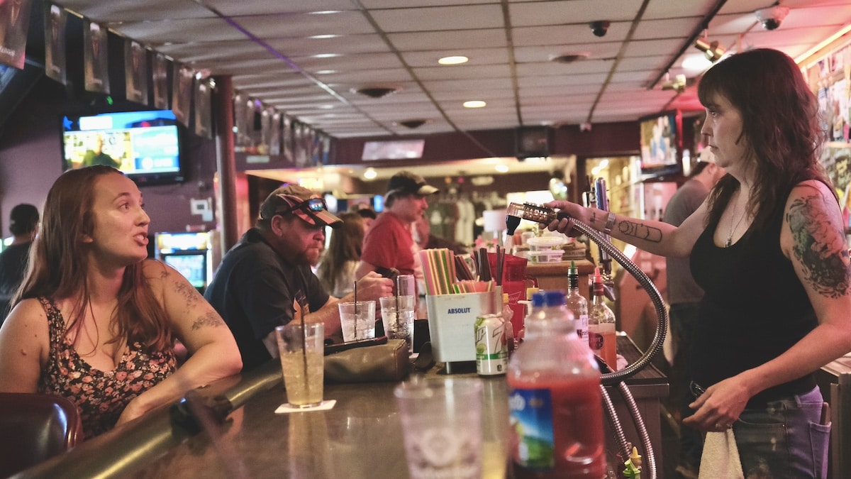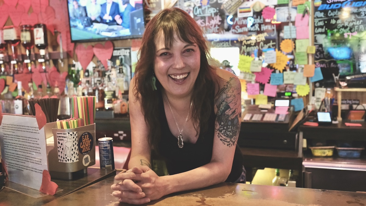 Lindsey’s tended bar at the T&C for around eight years, by her estimation. At this point she’s sort of like the conscience of the place as well as its memory. She can tell you a story to go with most of these names on the wall. She can tell you how it started as a list on a legal pad, then moved to this system that seems at once more haphazard and temporary yet at the same time more damning by its public nature. She can tell you how the ones on the poster board are from pre-pandemic times and had to be preserved after everything was removed from the walls for cleaning during those days of masks and go-cups and endless hand sanitizer.