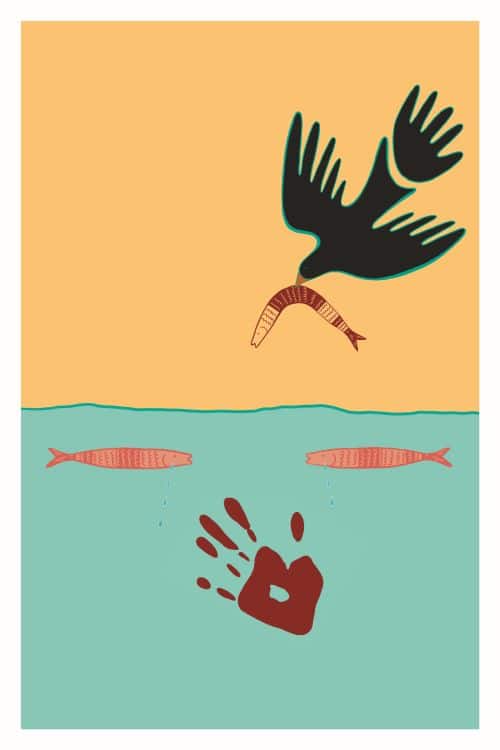 The Salmon Woman creation story was the first creation story Potter became familiar with after connecting back to her Lummi identity. In the story, Salmon Woman gives her salmon children to the people so that they can survive.