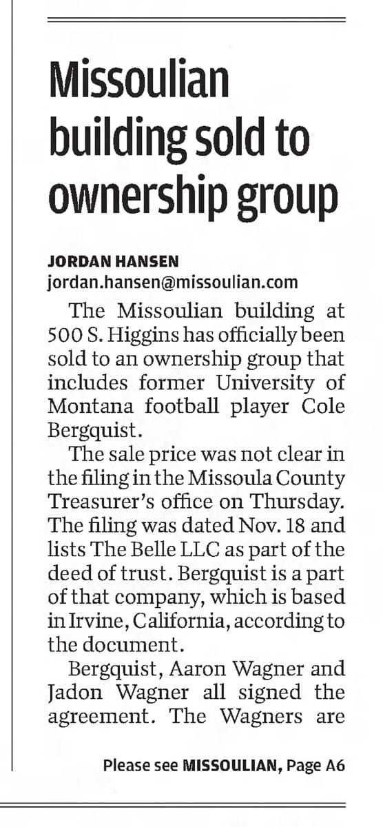 “We didn’t want to be constrained to the footprint of an old building designed for a newspaper press,” Bergquist said in a January 28 interview with The Pulp. “It doesn’t give you much freedom. A year and half ago, we had an 11-story building designed. In Missoula, that’s really hard to get those to pencil.”