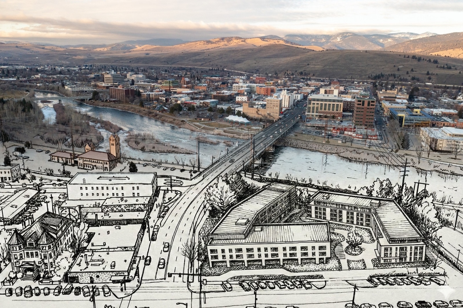 “We’d love to start in 2026, but I could see it getting pushed further than that,” Bergquist said. He’s aware of the saga of the Riverfront Triangle, downtown Missoula’s other bridge-side redevelopment project that’s been announcing elaborate development plans every few years since it was cleared in 1998. Each failed to attract enough investors to launch.