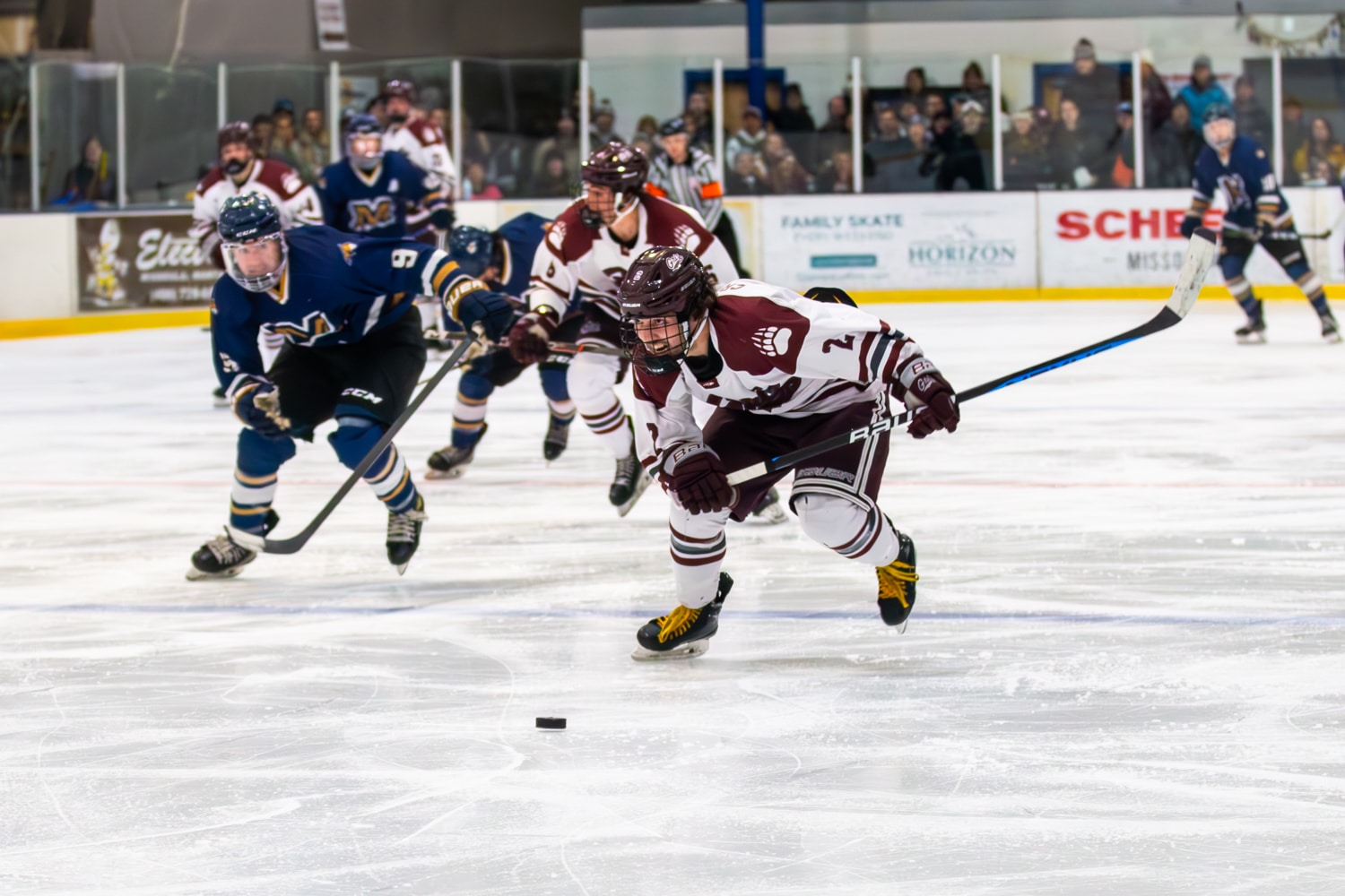 A few years ago, the University of Montana also started a team—not as an NCAA sport, but through the American Collegiate Hockey Association. Griz hockey games have turned out to be a hot ticket in town. Friday and Saturday night games are typically packed with students and hockey enthusiasts and, increasingly, people who are neither but have simply heard the games are a good time (and they are).