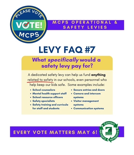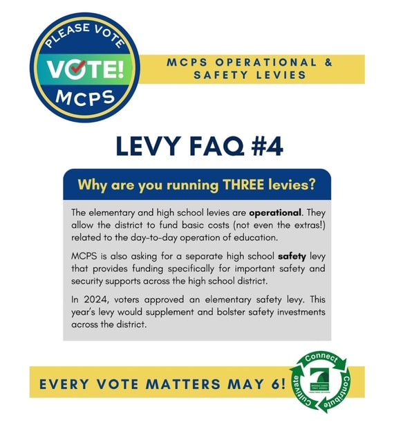 In March, the school board voted to set an elementary school operational levy of $384,947, a high school operational levy of $164,315 and a high school safety levy of $1 million for the May 6 ballot.