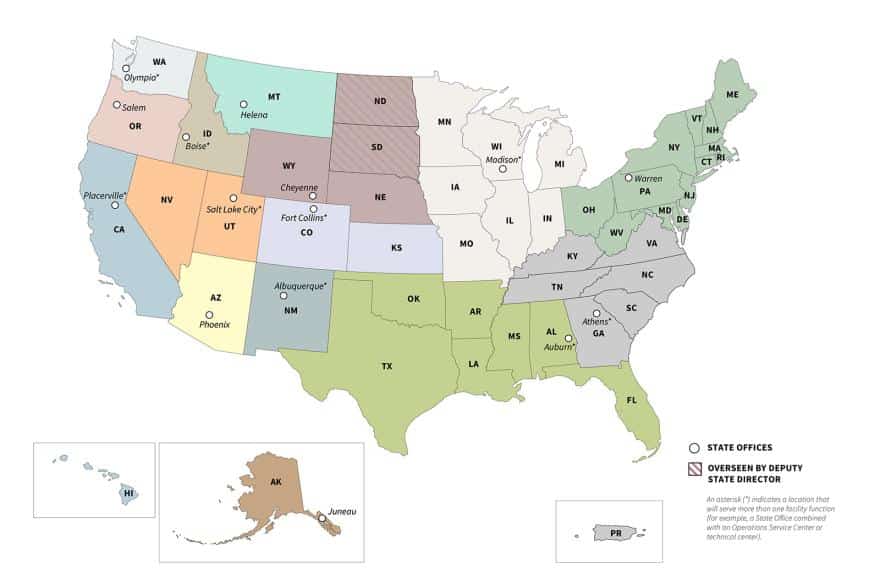 State directors would oversee national forest supervisors and work with state and tribal leaders on legislative affairs, communications and intergovernmental coordination. Individual national forests would retain direct responsibility for their landscapes, forestry activity, recreation and wildlife management, among other duties.