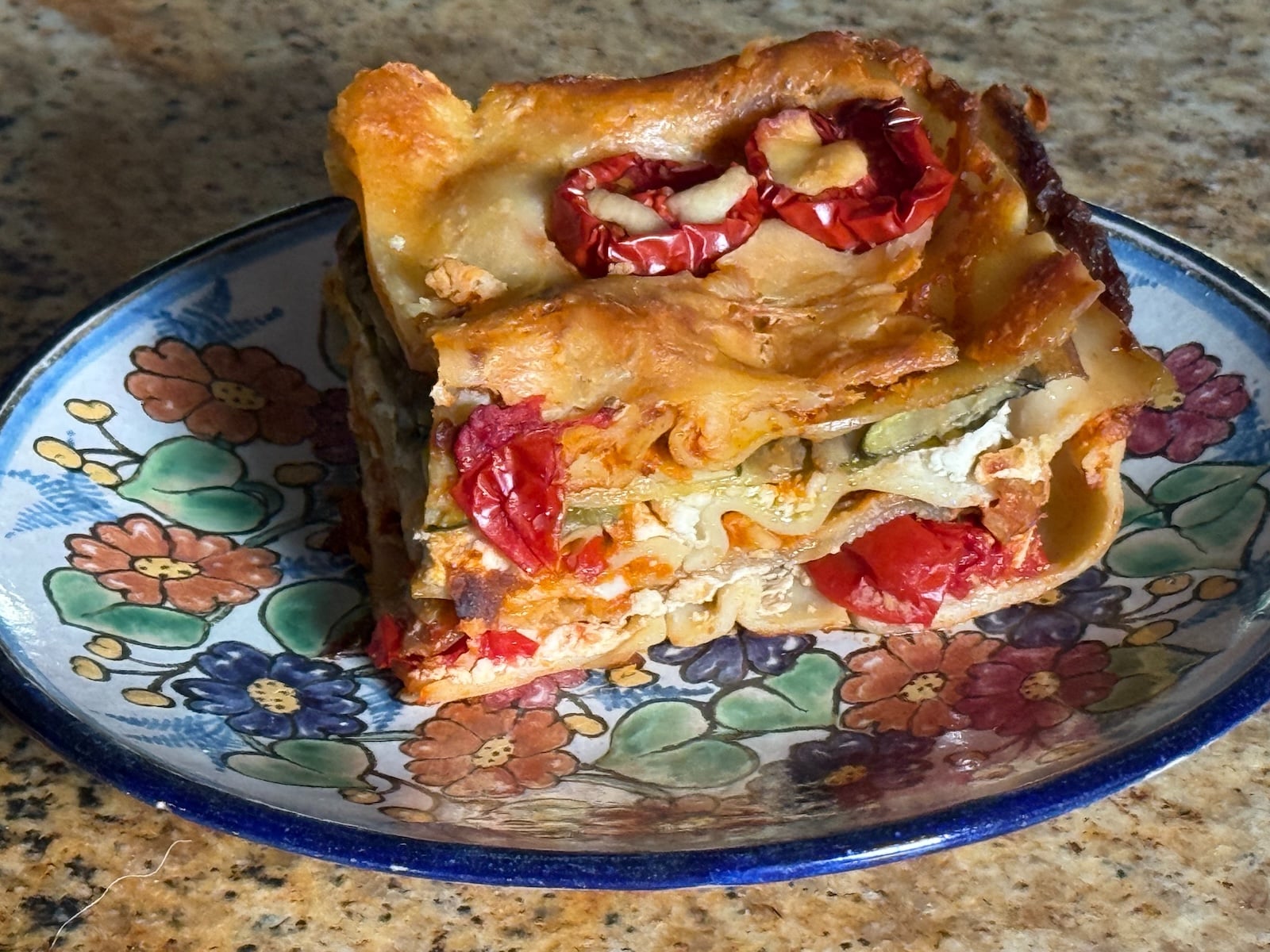 I call it double ratatouille lasagna because it requires making two batches of ratatouille, a sauce batch like the aforementioned, and a batch with thin-sliced ratatouille components layered in with the noodles, sauce and cheeses, so it cooks into a fresh, second batch of ratatouille.