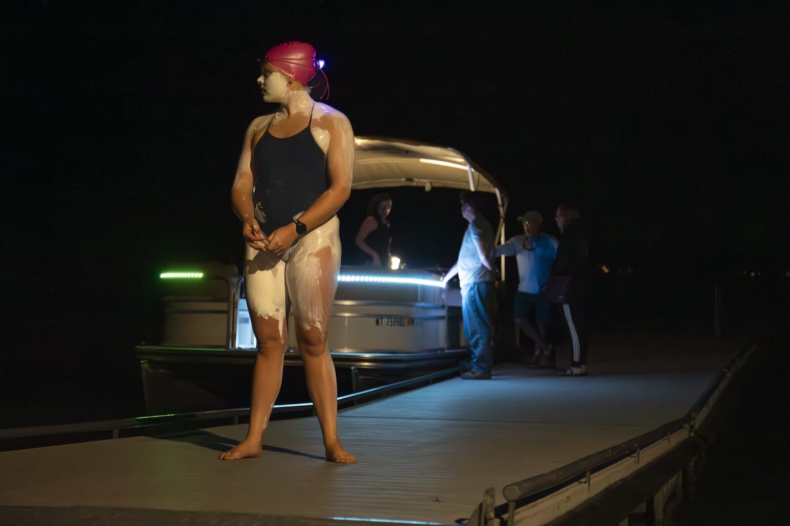At exactly 11:26 p.m., she started swimming.