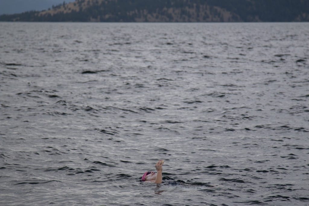 The vast section of open water that stretches from about Cedar Island south through the Narrows and into Polson Bay can’t be cheated. There is no shoreline to hug. No comforting land formation to set your sights on. No goal that seems attainable enough that your mind can focus on a small victory. Flathead’s famed Wild Horse Island — usually a welcomed sight — is, for someone swimming across the lake, a landmark that simply can’t go away fast enough. It offers no tick mark of progress. It lends no encouragement. Twelve hours into a swim, it actually demoralizes. The answer to getting past it? Maybe it was in Bender’s words she delivered to Isabella on several occasions: “Just keep swimming.”
