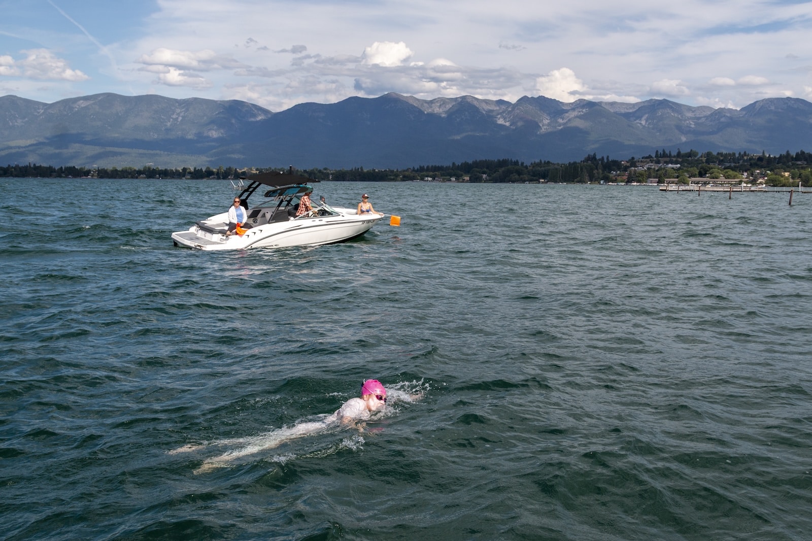 Just before noon on Saturday, July 19, 2025, Missoula swimmer Isabella Seagrave found herself in trouble. She was in the middle of Flathead Lake, somewhere east of Wild Horse Island, southeast of the small shoreside community of Rollins and about 14 miles north of Polson. The wind, which had seemed moderate from shore, was significant enough to create waves measuring up to four feet at times, with small white caps visible in every direction. Bella had already been swimming freestyle for roughly 12 hours, and her shoulders were barking. Forward momentum was slow at best and at times seemed impossible: one stroke forward and the lake pulled her three strokes back.