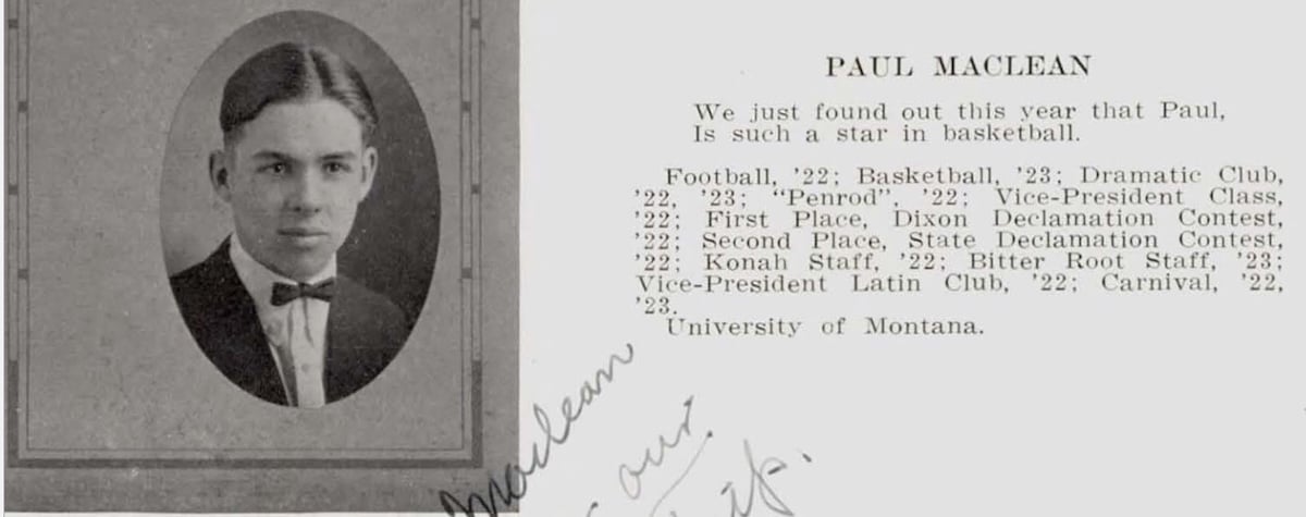 Throughout the book, Pauly (who is based on the author) runs around with a group of high schoolers from various walks of Missoula’s social life, most of whom are based on real people. For example, there is Betty Darling, the daughter of a prominent banker who Pauly has an unrequited crush on. Betty and her family are based on the Sterling family, whose father, Fred, was president of the First National Bank in Missoula. Another key character, Augie Storm is the son of a preacher. Augie is based on Paul Maclean, the son of Reverend John Maclean (minister at the First Presbyterian Church on 5th Street) and brother of famous novelist Norman Maclean. Brad Pitt plays Paul Maclean in the movie version of Maclean’s novel “A River Runs Through It.” Stiff Sullivan is based on a different local hero: William “Wild Bill” Kelly. The fictional Sullivan and real-life Kelly were both from working class families and both were local sports legends, particularly for their prowess on the football field. With these and other Missoula kids, Pauly plays sports, hops a train to Butte (there was an actual “Hobo club” at the high school at this time), and generally roams around Missoula doing youthful things.