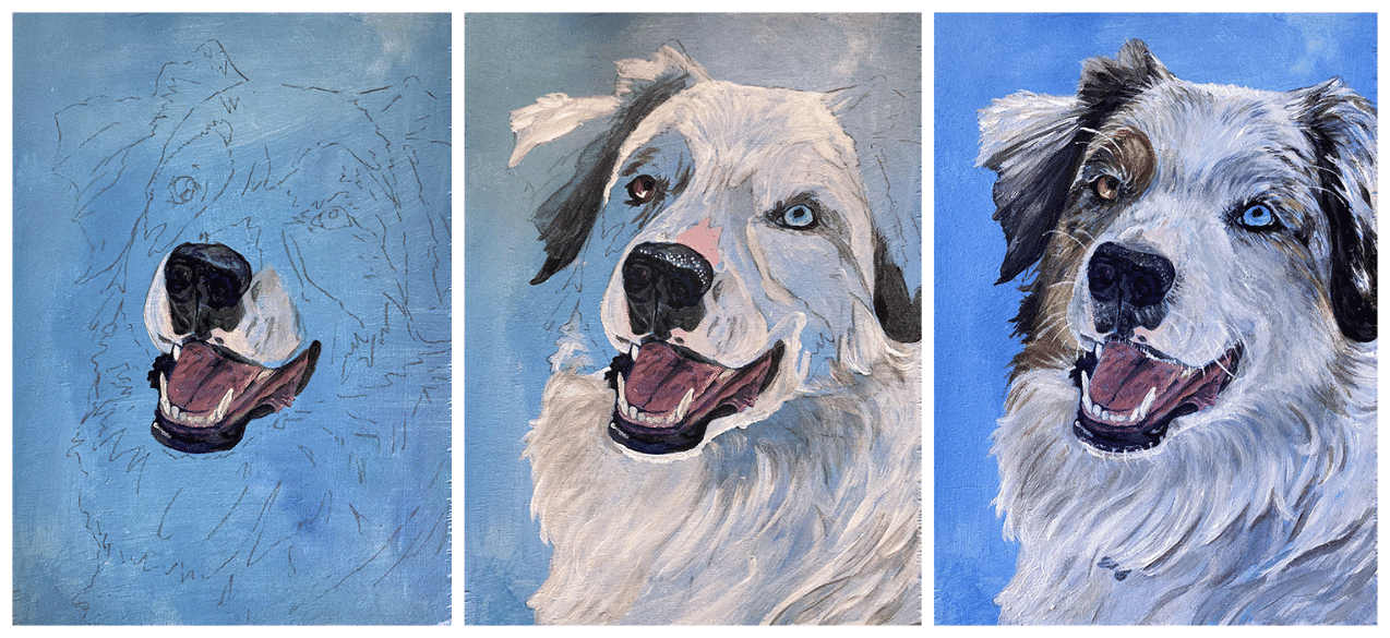“I want there to be a collective grieving,” Sanders says. “And I think even if someone’s looking at a portrait of an animal that’s not their own, there’s a reminder of the animals that they’ve been honored to caretake. So my idea and dream is Missoulians who are grieving animals or who are anticipating grieving an animal being willing to be part of the project of their animal being painted and then being in this collection of paintings.”
